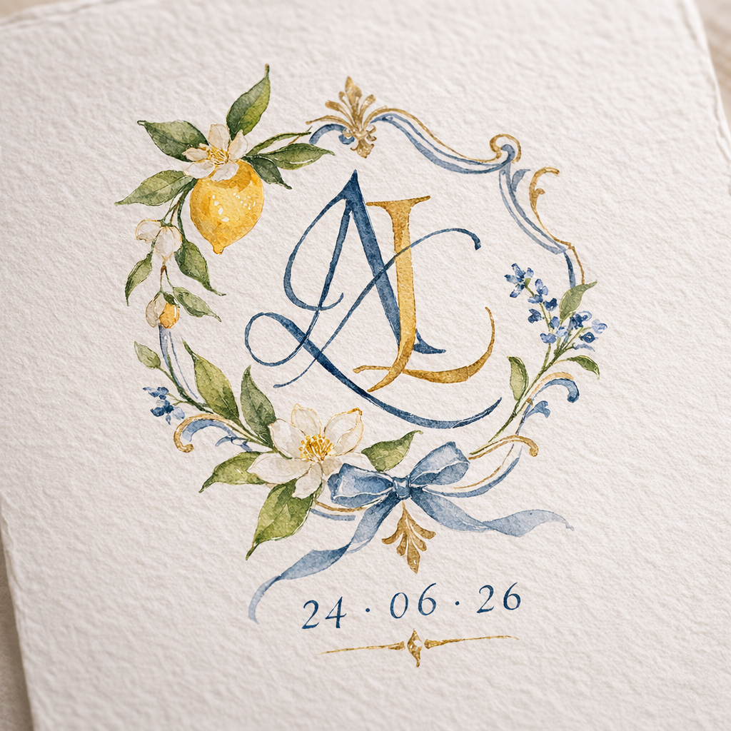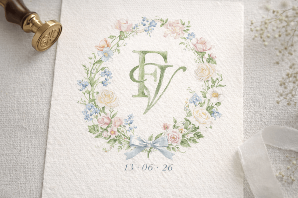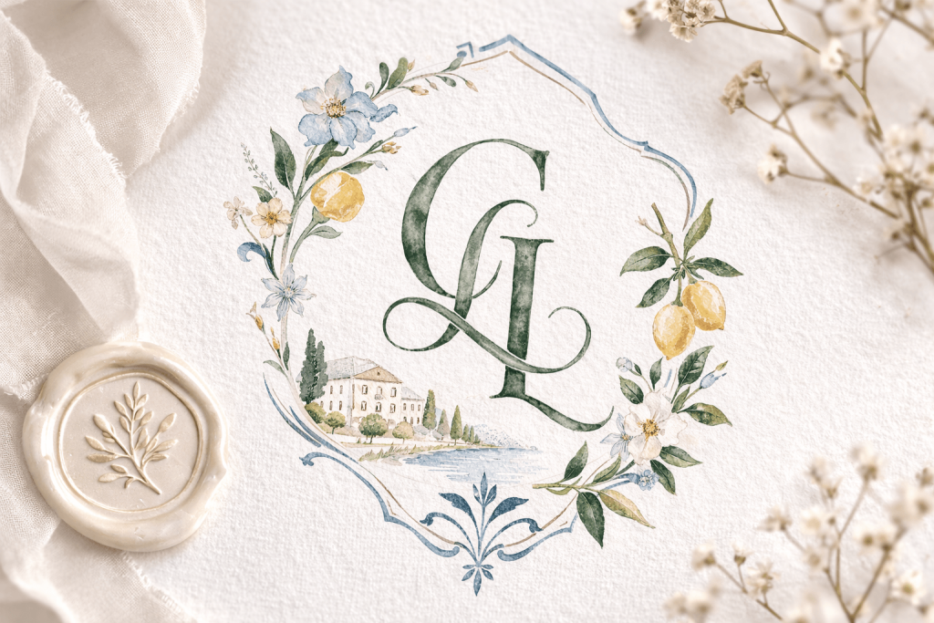 Il logo compare spesso sugli inviti di matrimonio e rappresenta il primo contatto visivo che gli ospiti hanno con lo stile dell’evento.